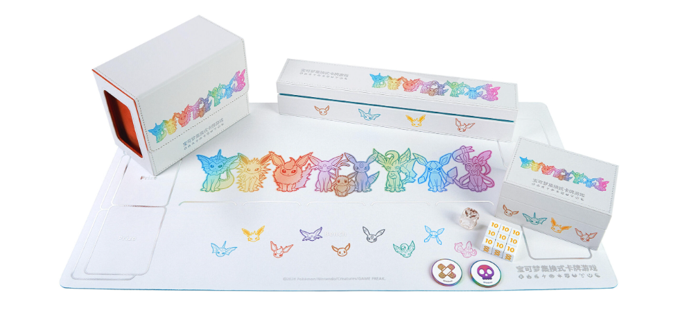 The Eevee Advanced Gift Box also includes newly upgraded Eevee-themed battle accessories, which feature damage counters, themed playmats, various storage boxes and more. Stand out as the star of every battle table with these amazing accessories!