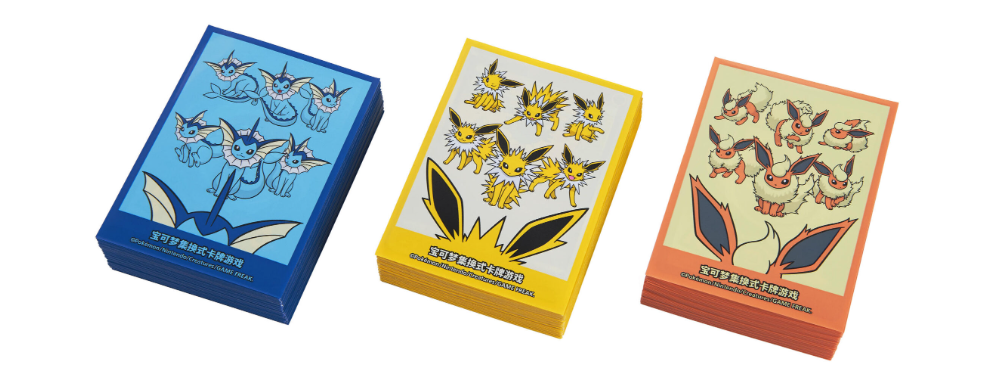 Don’t miss the themed card sleeves and collection binders for Vaporeon, Jolteon and Flareon